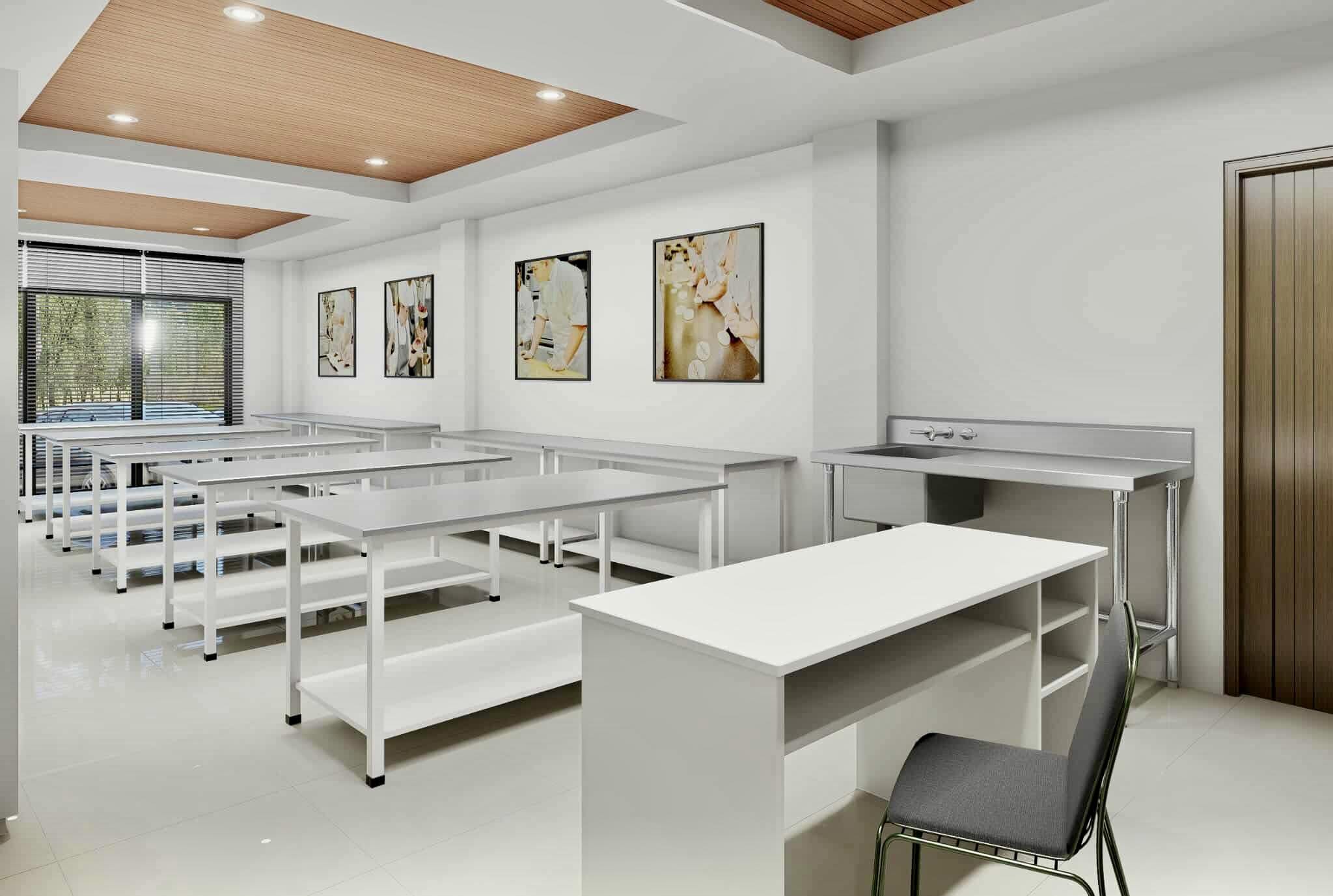The demo kitchen is a unique space where culinary artistry takes center stage. This area is specifically designed for demonstrations and masterclasses led by renowned chefs. It serves as an inspiration hub for students to witness expert techniques, explore new culinary trends, and refine their skills through live demonstrations.